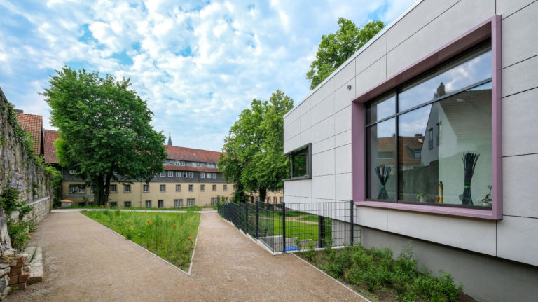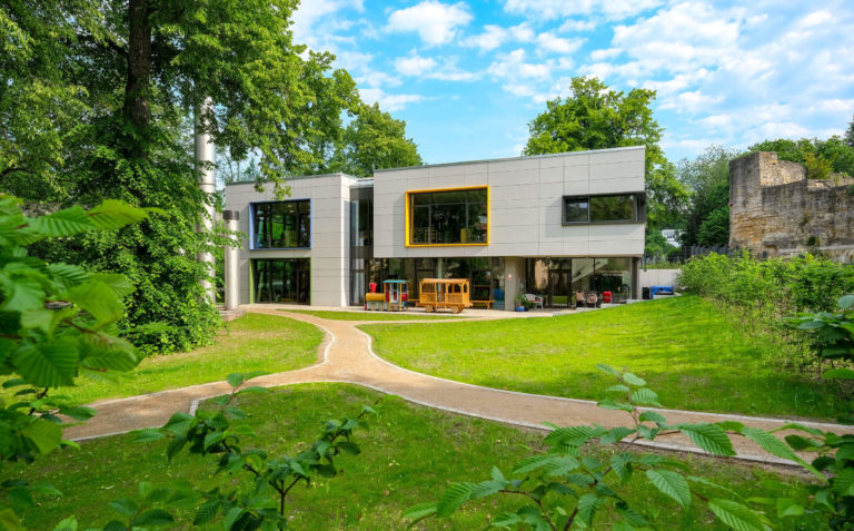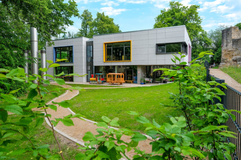 Die Lage könnte kaum schöner sein: Umgeben von Stadtmauer und historischer Wallanlage, dem barocken Magdalenengarten und Magdalenenhof in Hildesheim wurde die neue Kita St. Bernward Anfang 2018 eröffnet – mitten im Grünen und doch im Herzen der Stadt gelegen. Der Bau wurde im Frühjahr 2016 begonnen, betreut von der Bernward Immobilien GmbH als Generalplaner.