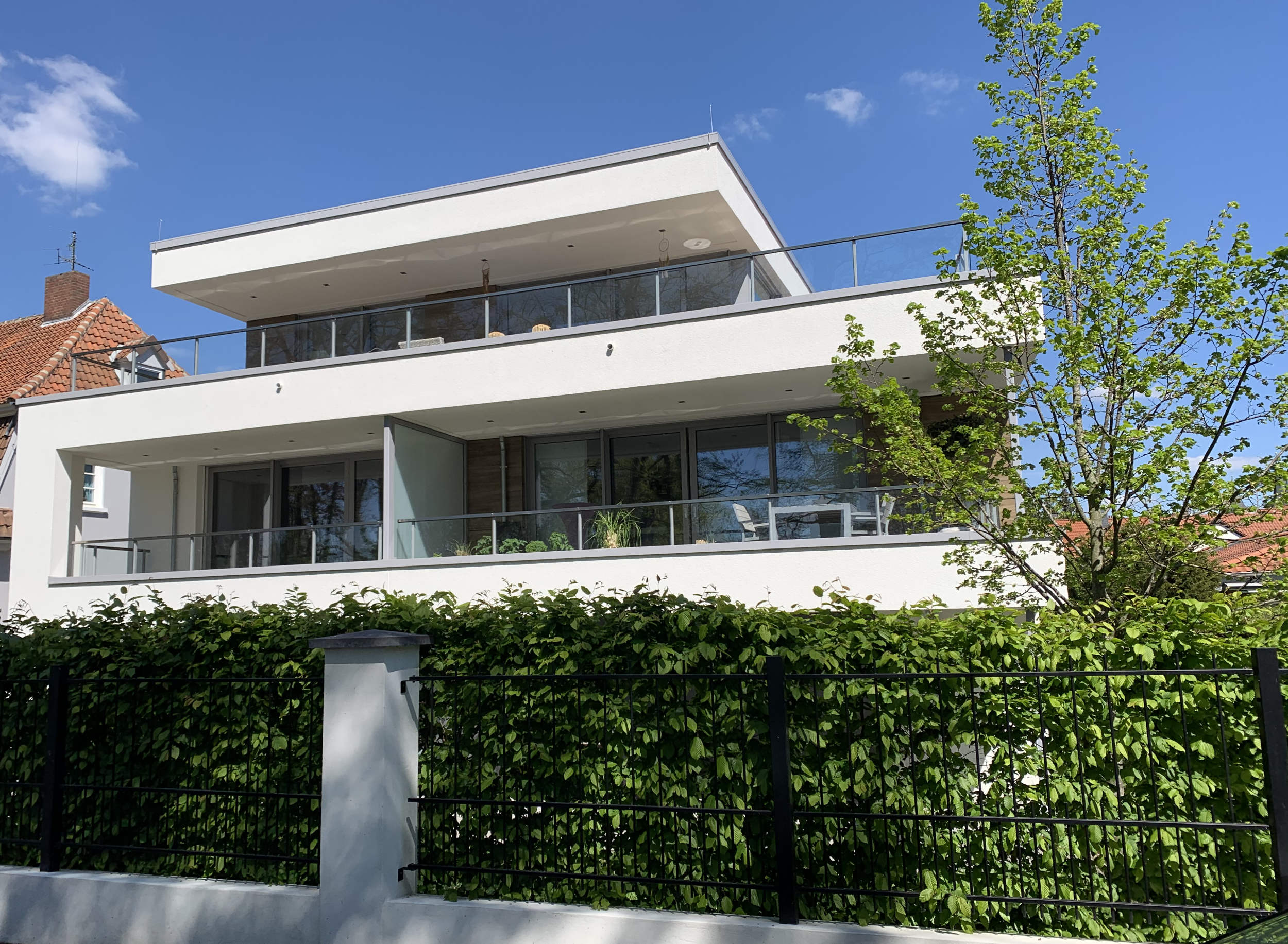- Erd- und Obergeschosse: Sechs moderne 2- bis 3‑Zimmer-Wohnungen (ca. 79 bis 100 m²) mit offenen Küchen, großzügigen Terrassen oder Balkonen und teilweise Blick zur Innerste.