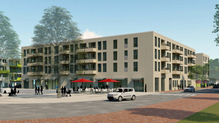 Durch Neu- und Umbau ent­ste­hen in fünf Bau­fel­dern (1, 6, 7, 7 A, 13) drei- bis vier­ge­schos­si­ge Häu­ser für viel­fäl­ti­ge Wohn­for­men, zahl­rei­che Gas­tro­no­mie- und Gewer­be­an­ge­bo­te, eine Kin­der­ta­ges­stät­te sowie zen­tra­le und dezen­tra­le Erho­lungs­flä­chen. Die Bau­ten des BWV grup­pie­ren sich um einen Quar­tiers­platz, der mit grü­nem Flair und hohem Frei­zeit­wert nicht nur Bewoh­ner des „Ost­ends“ zum Ver­wei­len ein­la­den wird.